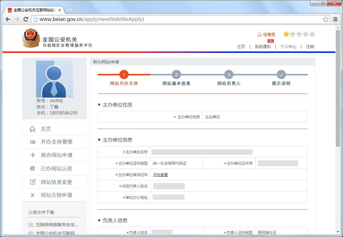 公安网站备案是由公安局举办的网站备案,与工信部ICP备案和域名实名制不同(一个为工信部主办,一个公安主办),所有在国内的网站都需要办理,此项仅需在线办理,但需要客户自行办理,备案,办理为全程网络办理,办理时需验证手机等。